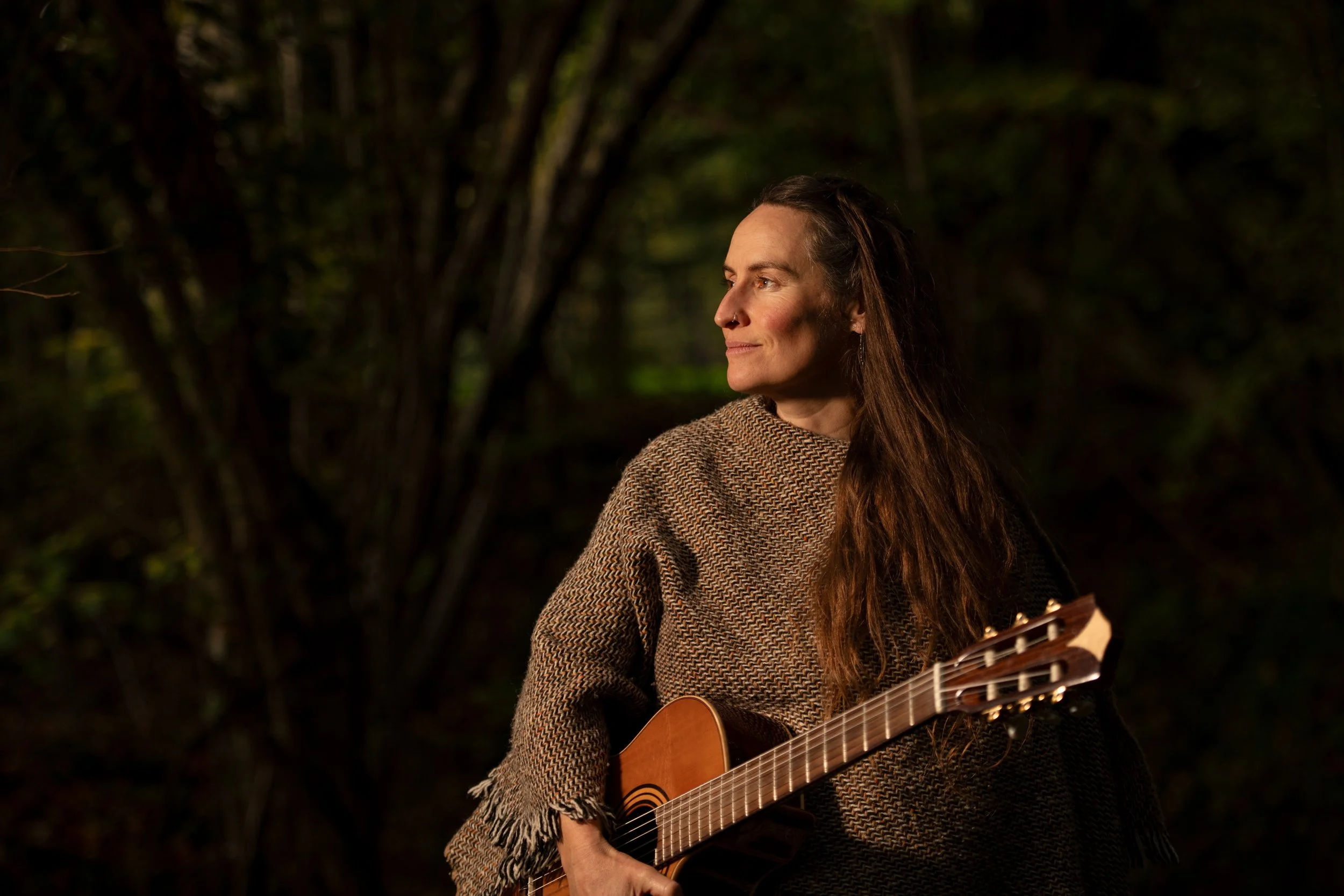Ted Waters is a soul-soothing, heartwarming singer-songwriter whose vibrant land-based life inspires fire-fueled folk, sharing stories of love, acceptance, and the complex beauty of our modern world from a deeply grounded perspective. A classically trained multi-instrumentalist and Natural Voice practitioner, she blends her classical roots with contemporary folk to create warm vocals and intricate instrumentation. Her stunning voice and gentle finger-picking guitar invite listeners into a space of connection and reflection.